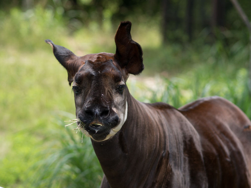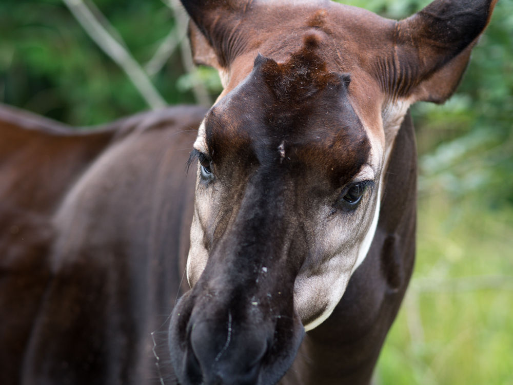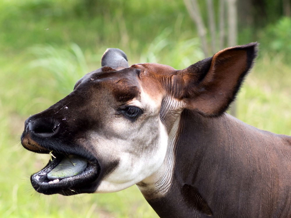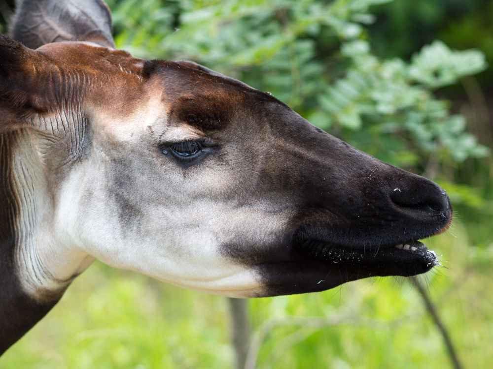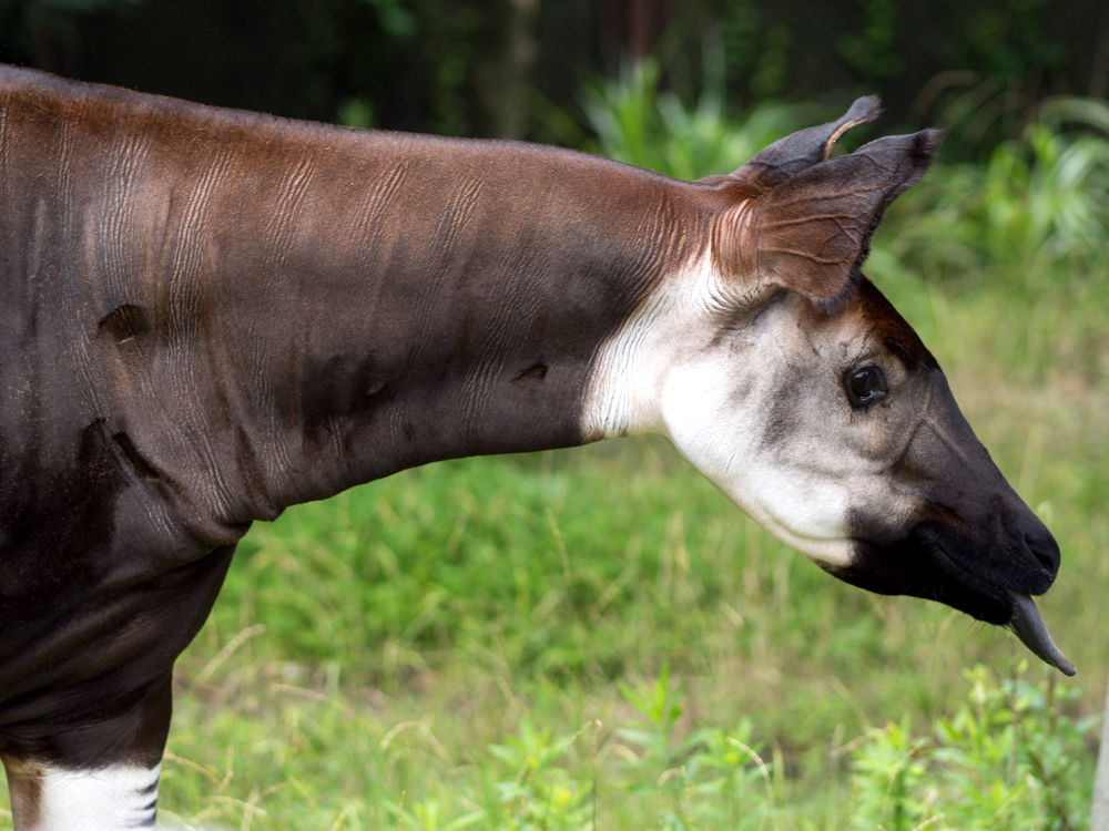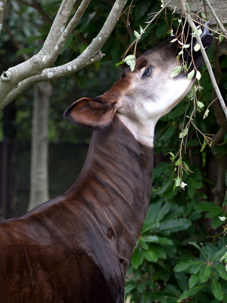オカピのひずめは二つに割れていてキリンの特徴です。