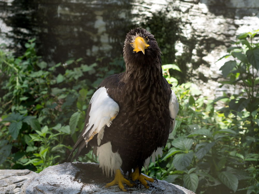 大鷲をフェンス越しに撮影しています。
