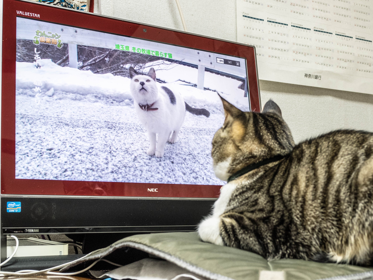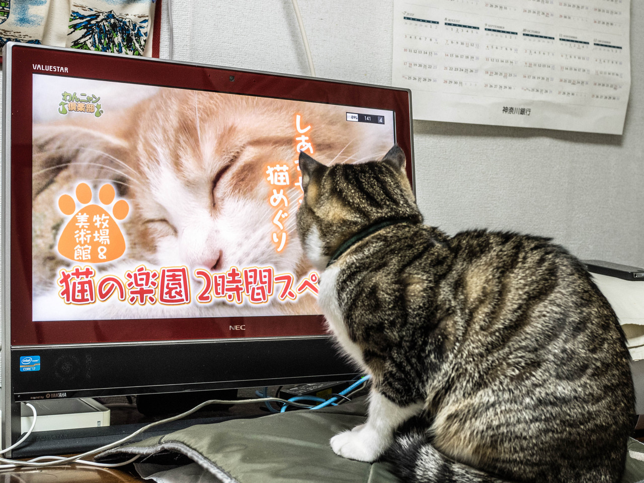 美斗くんはテレビで猫の鑑賞を楽しみ始めました。